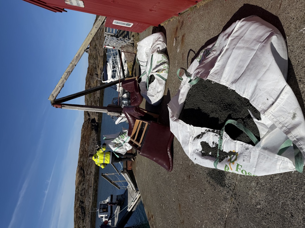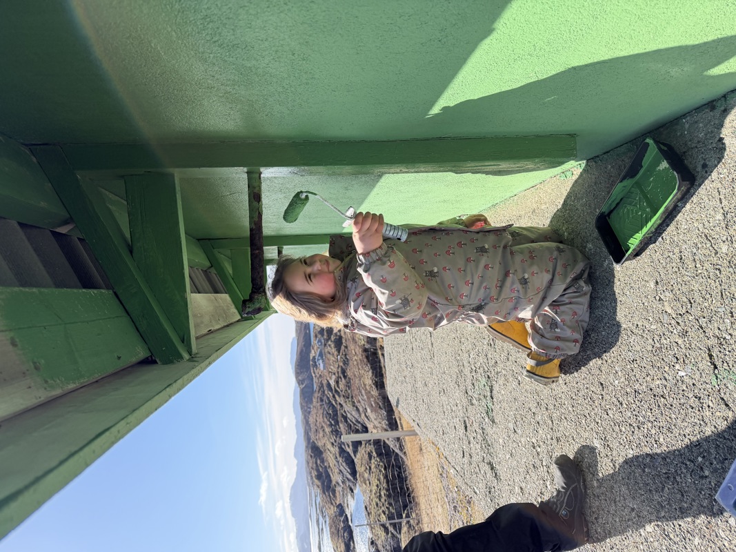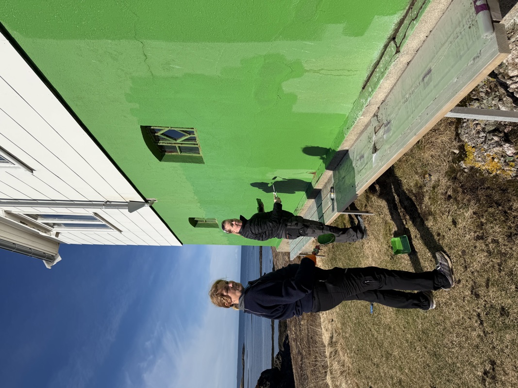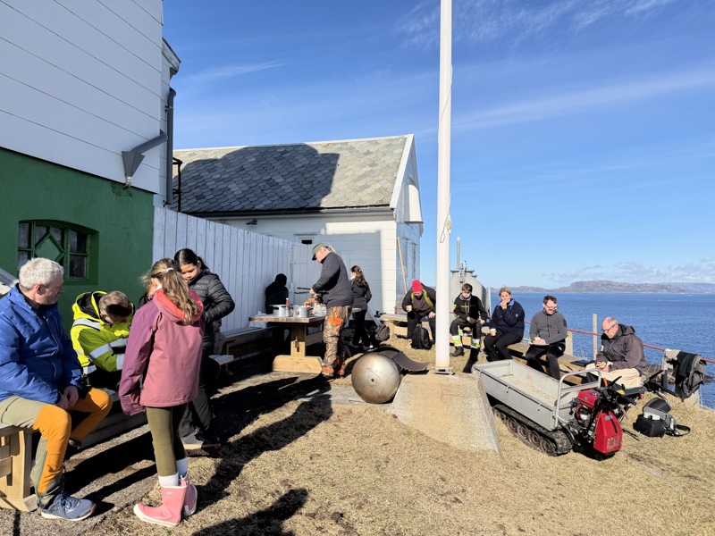 25 (rekord) fyrvenner møtte opp, selv om palmesøndagen startet med noe ruskete vær. Dette endret seg imidlertid raskt, og vi fikk løst mange oppgaver gjennom dagen. Vasking og nye 60-talls møbler i fyrboligen, maling av grunnmur (“Det grønne fyret”), benker og bord er på plass, torv fjernet, grusing av sti opp til fyret, strandrydding og selvsagt grillmat til dugnadsgjengen. Kenneth Olsen stilte med arbeidsbåt (stor takk!!), og fraktet grus til Asen og søppel i land.